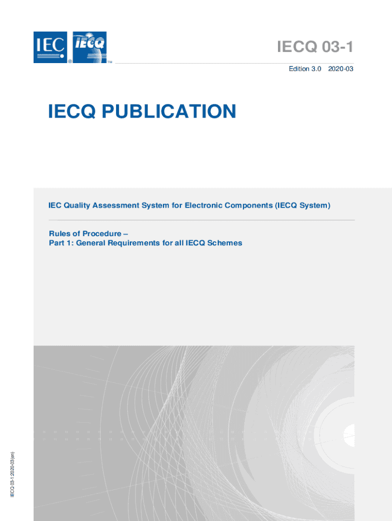 IEC 031 Edition 3.0202003IECQ PUBLICATION IEC Quality Assessment System for Electronic Components (IEC System)IEC 031:202003(en)Rules of Procedure Part 1: General Requirements for all IEC SchemesTHIS