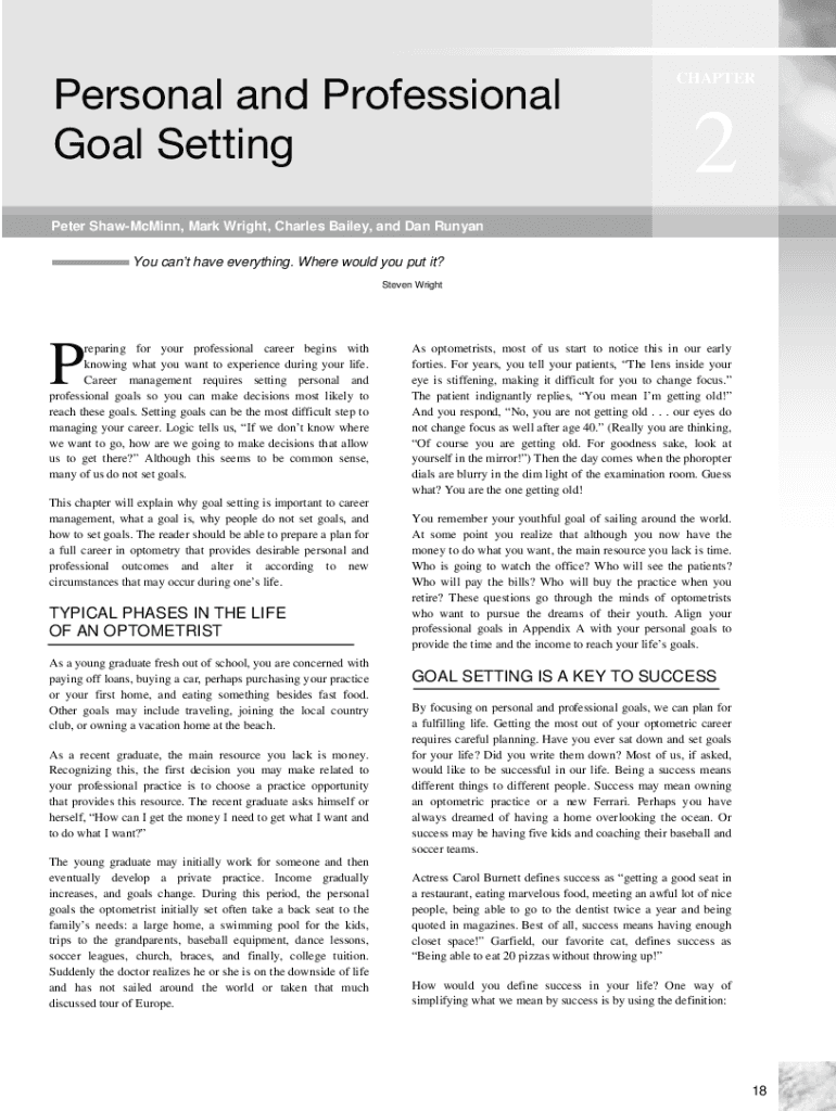 SECTION 1 Preparing for your Professional CareerPersonal and Professional Goal Setting CHAPTER 2Personal and Professional Goal SettingCHAPTER2Peter Shamming, Mark Wright, Charles Bailey, and Dan Bunyan