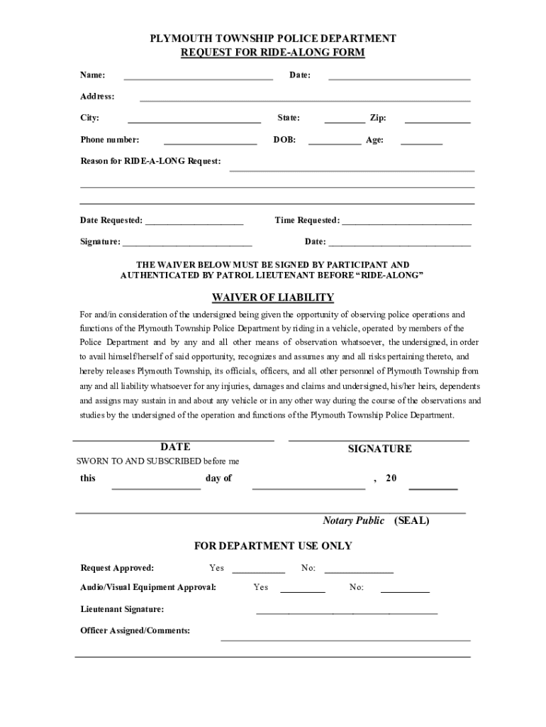 Fill out your ride along application and online with pdfFiller!
