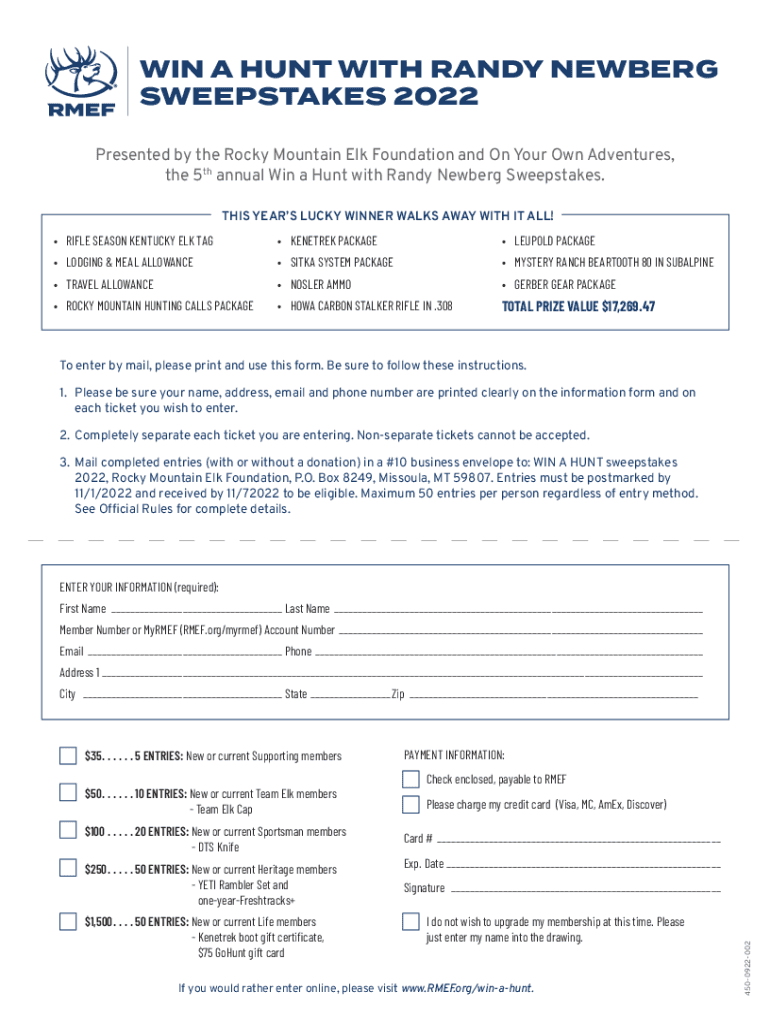 the 5th annual Win a Hunt with Randy New berg Sweepstakes.