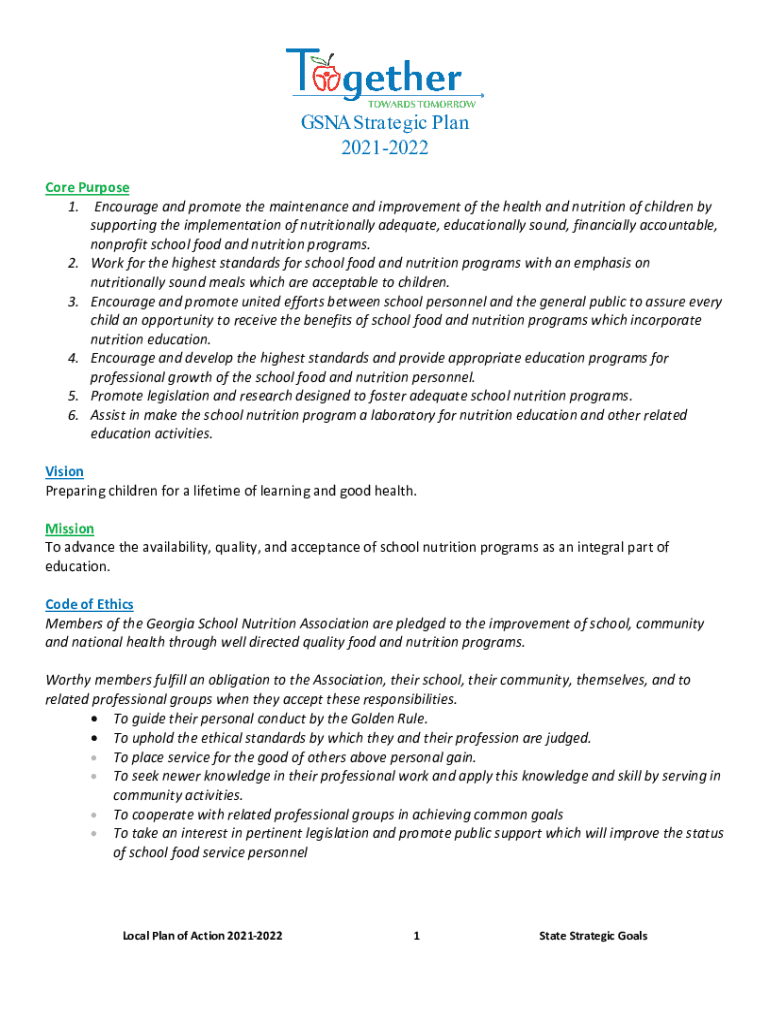 GINA Strategic Plan 20212022 Core Purpose 1. Encourage and promote the maintenance and improvement of the health and nutrition of children by supporting the implementation of nutritionally adequate,
