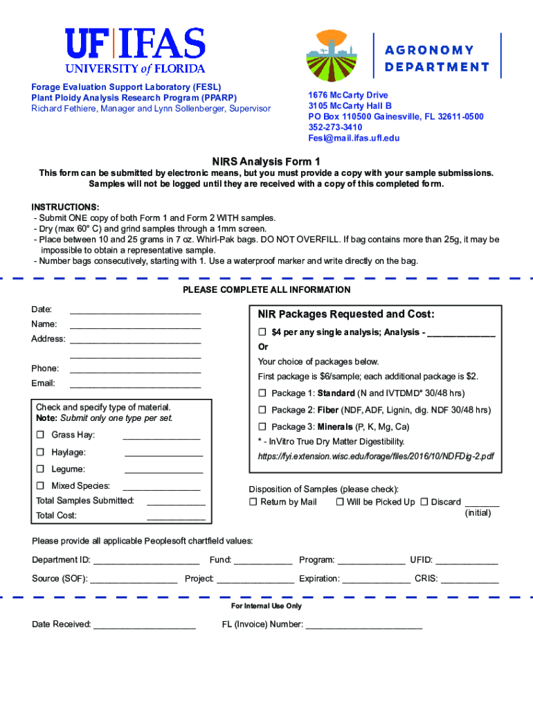 NIRS analysis form 1 is a form used to submit analytical data for Near Infrared Spectroscopy (NIRS) analysis.