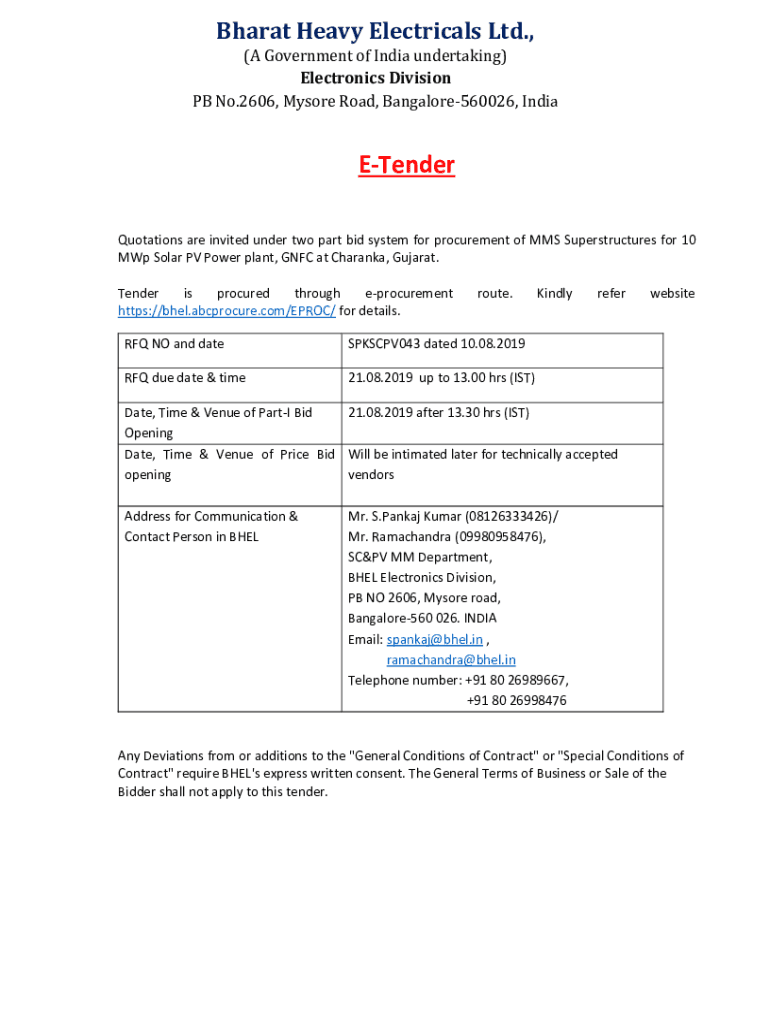 Fill out your bhel tender for supply online with pdfFiller!