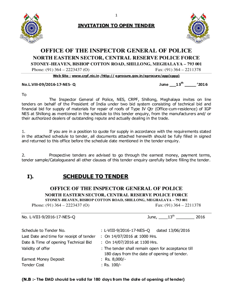 Get the free NIT - Roof Type-IV - crpf gov
