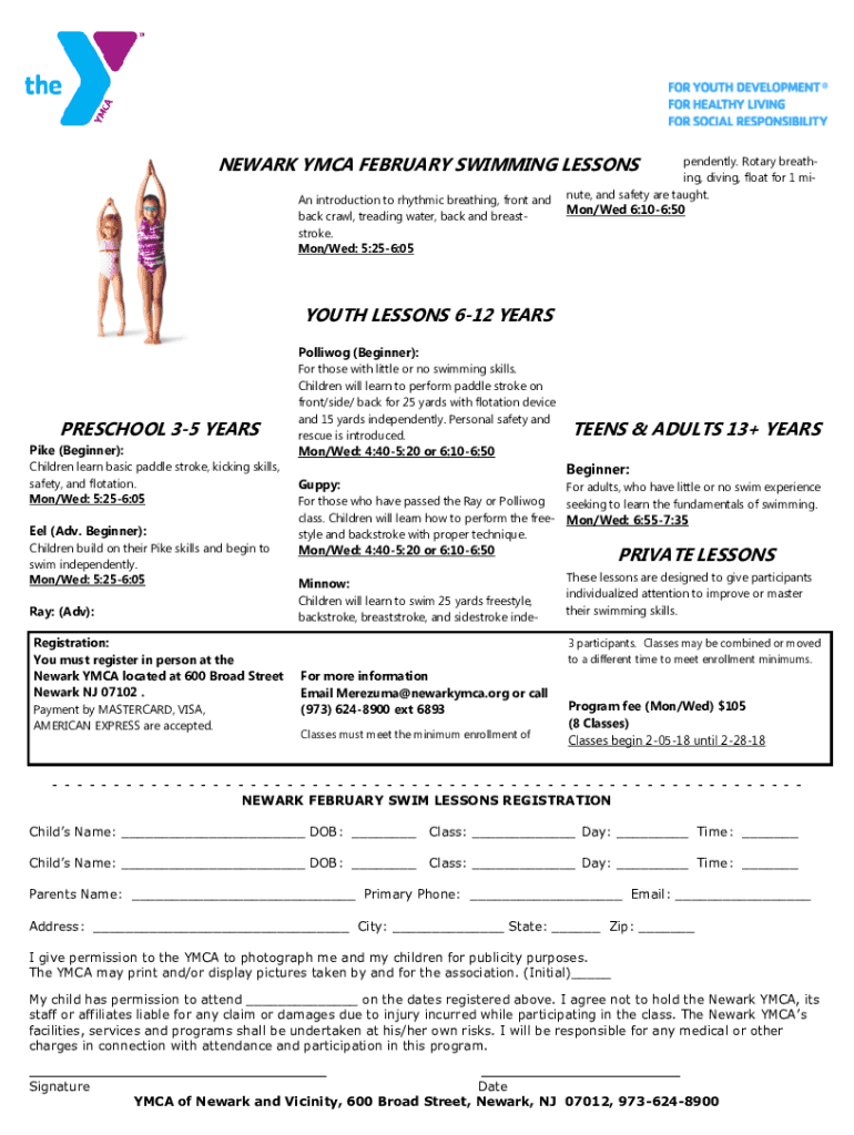 Anyone who wishes to participate in the Newark YMCA February swimming program is required to fill out the necessary registration forms.