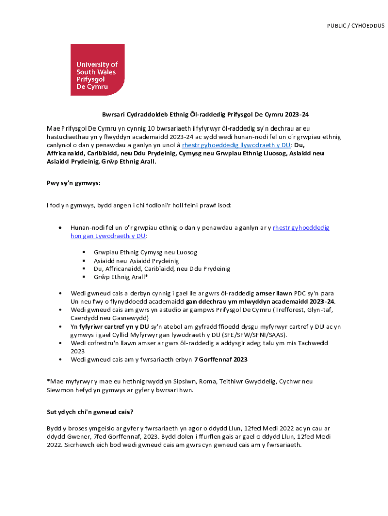 Get the free Bwrsari Cydraddoldeb Ethnig l-raddedig Prifysgol De Cymru ...