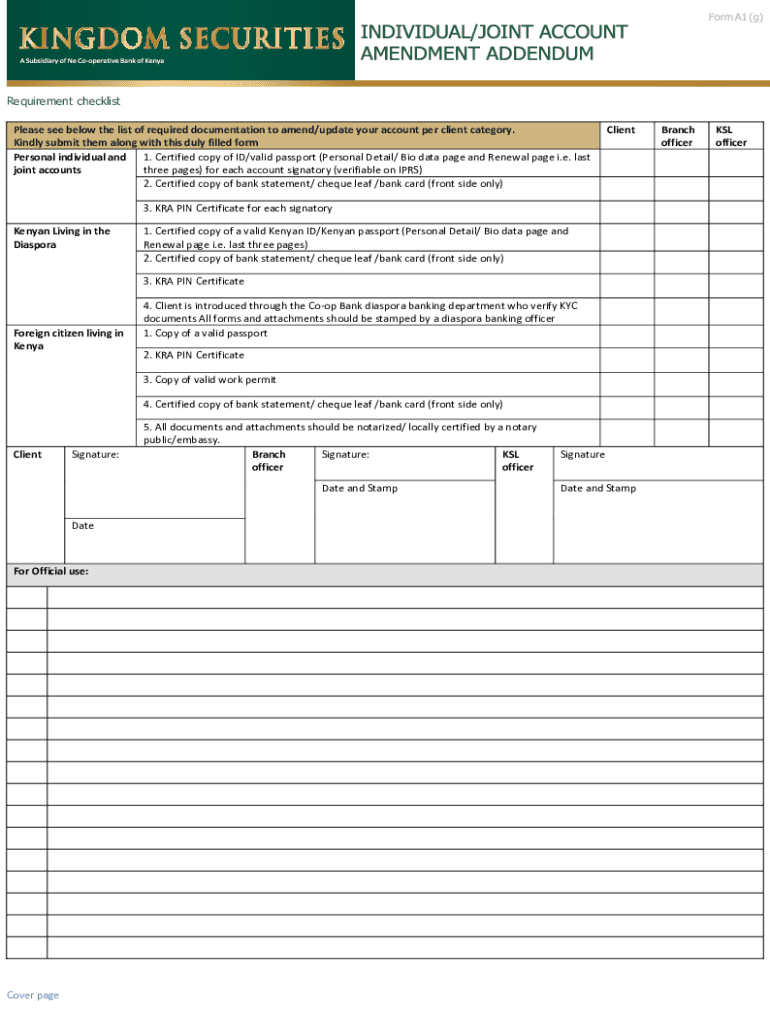 Requirement checklist Please see below the list of required documentation to amend/update your account per client category. Kindly submit them along with this duly filled form Personal individual