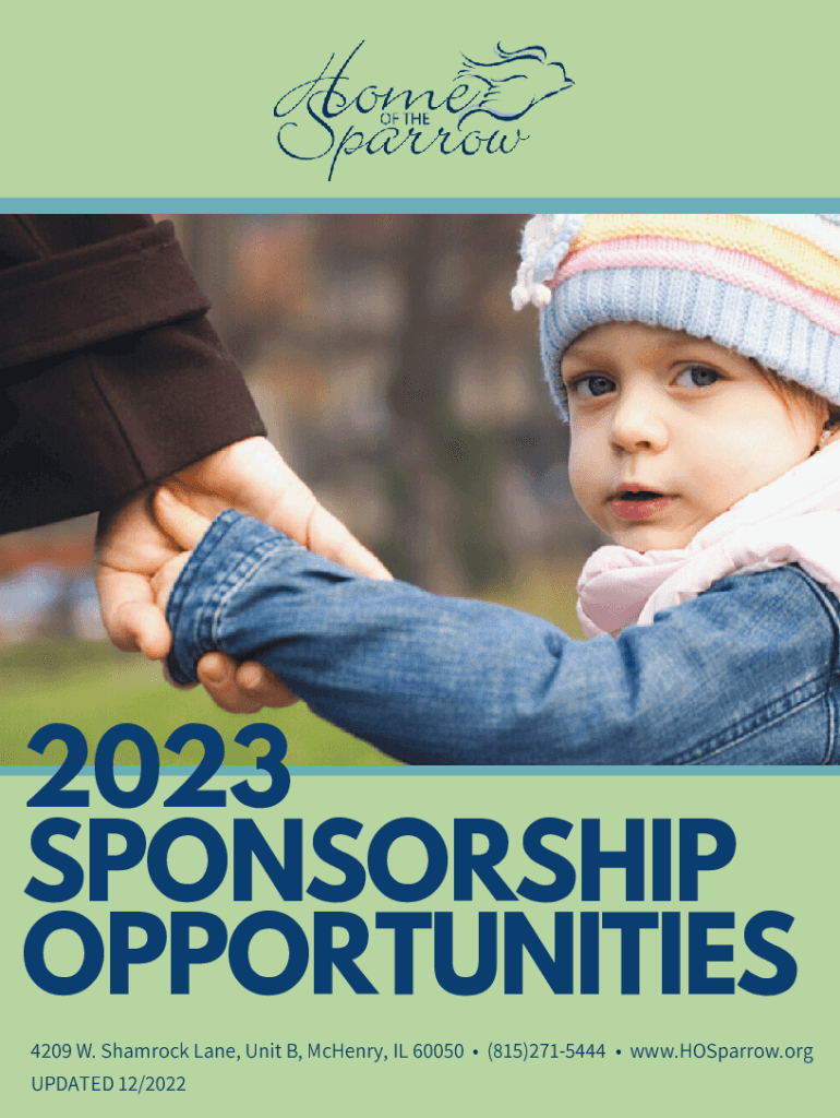 2023 SPONSORSHIP OPPORTUNITIES 4209 W. Shamrock Lane, Unit B, McHenry, IL 60050 (815)2715444 www.HOSparrow.org UPDATED 12/2022Dear Friend, Business Partner, and Home of the Sparrow Supporter, Home