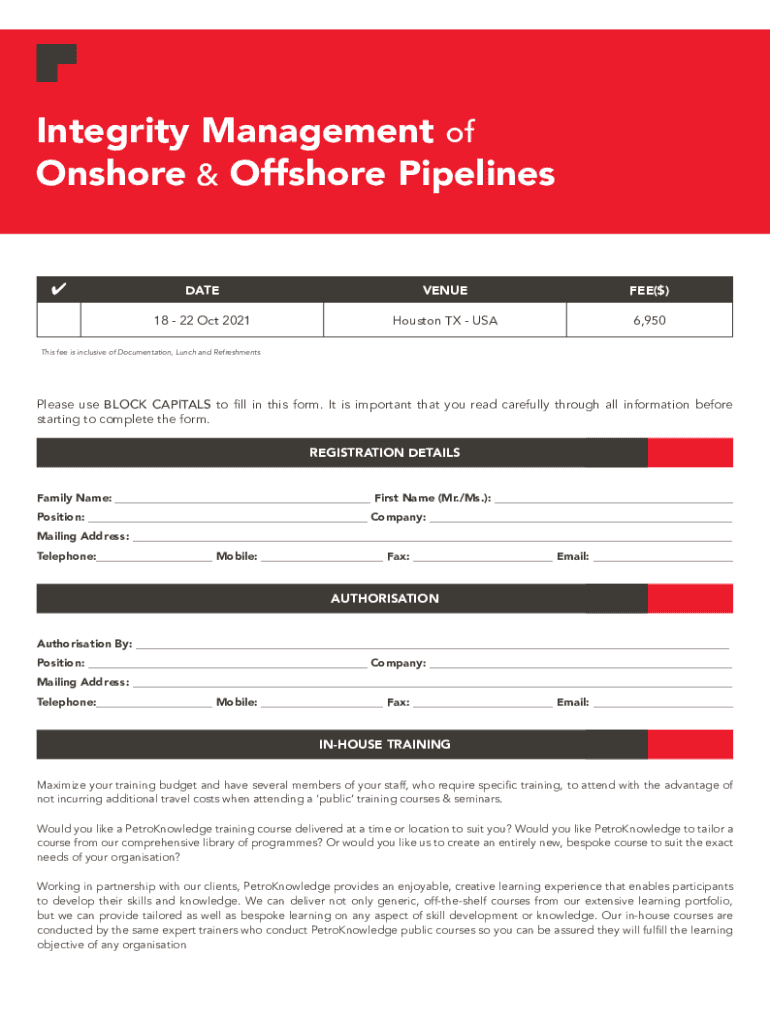 Onshore & Offshore Pipelines27Jun2118 22 Oct 2021, Houston This course is Designed, Developed, and will be Delivered under