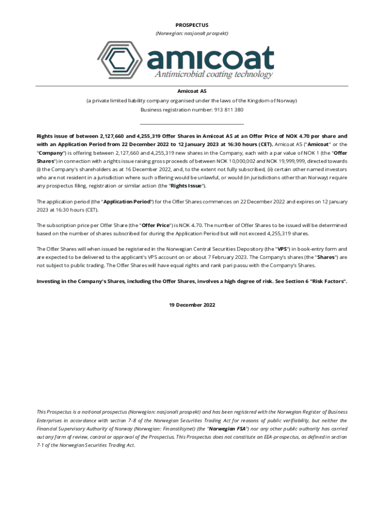 Business registration number: 913 811 380Rights issue of between