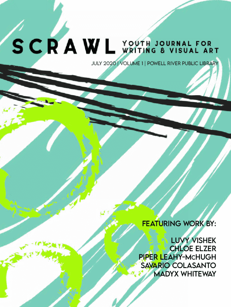 July 2020 | Volume 1 | Powell River Public LibraryFeaturing work by: Lucy Wishes Chloe Elder Piper LeahyMcHugh Bavaria Monsanto Made WhitewayWelcome to SCRAWL 2020 Want to be published in scrawl 2020?