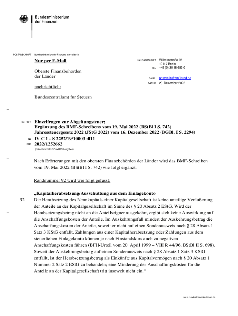 POSTANSCHRIFTBundesministerium her Finance, 11016 Berliner per EMailHAUSANSCHRIFT