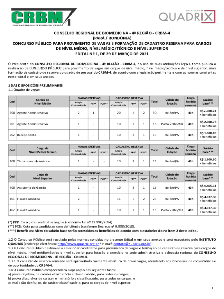 Obtenha o gratuito Novo concurso do CRBM 4 tem 130 vagas para mdio, ...