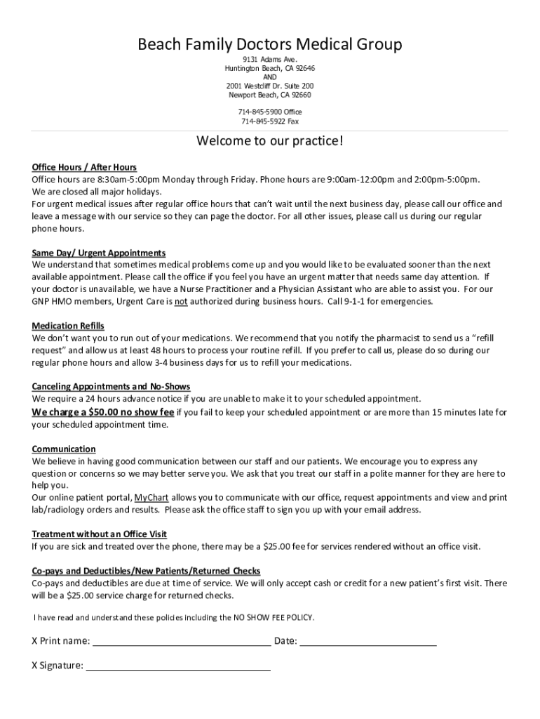 Email, fax, or share your beach family doctors medical form via URL. You can also download, print, or export forms to your preferred cloud storage service.