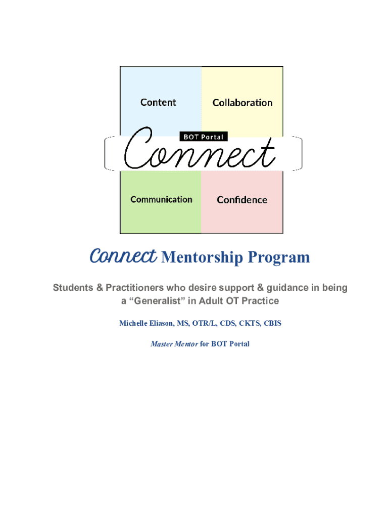 C next Mentorship Program Students & Practitioners who desire support & guidance in being a Generalist in Adult OT Practice Michelle Elias on, MS, OR/L, CDS, CUTS, CBI Master Mentor for BOT Portal
