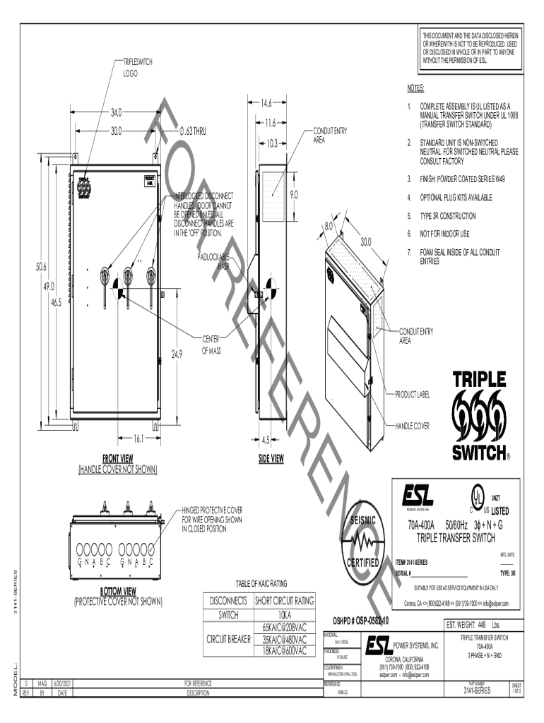 THIS DOCUMENT AND THE DATA DISCLOSED HEREIN OR WHEREWITH IS NOT TO BE REPRODUCED. USED OR DISCLOSED IN WHOLE OR IN PART TO ANYONE WITHOUT THE PERMISSION OF ESL.TRIPLESWITCH COGNATES:14.634.011.6.63
