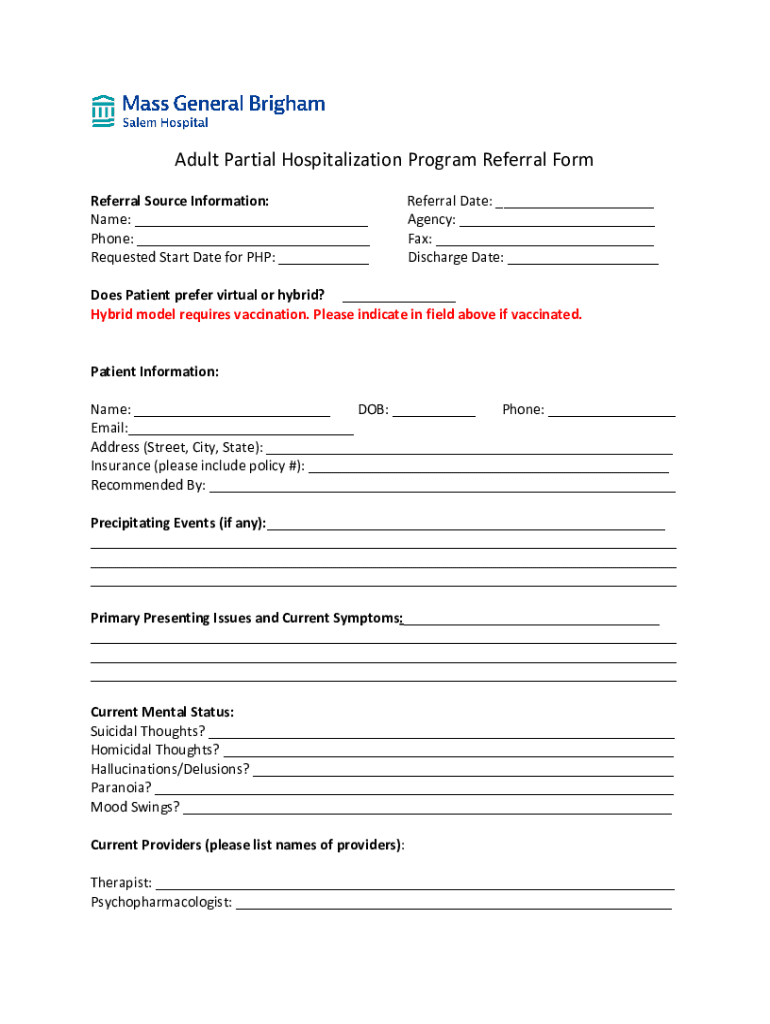 Get the free Adult Partial Hospitalization Program Referral Form - NET