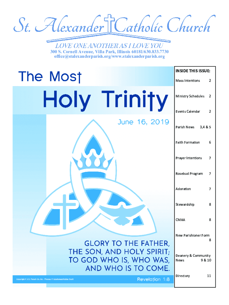 300 S. Cornell Avenue, Villa Park, Illinois 60181/630.833.7730 office@stalexanderparish.org/www.stalexanderparish.org INSIDE THIS ISSUE: Mass Intent ons2Ministry Schedules2Events Calendar2Parish News3,4