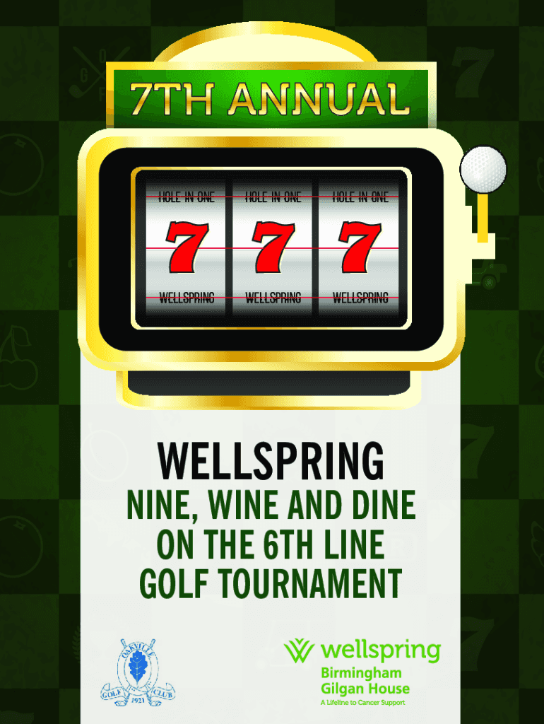 REGISTER ONLINE AT wellspring.ca/golfgo flHOLEiNONEHOLEiNONEg Wellspring fWELLSPRINGHOLEiNONEl WELLSPRINGWELLSPRINGNINE, WINE AND DINE ON THE 6TH LINE GOLF TOURNAMENTREGISTER ONLINE AT wellspring.ca/golfgo