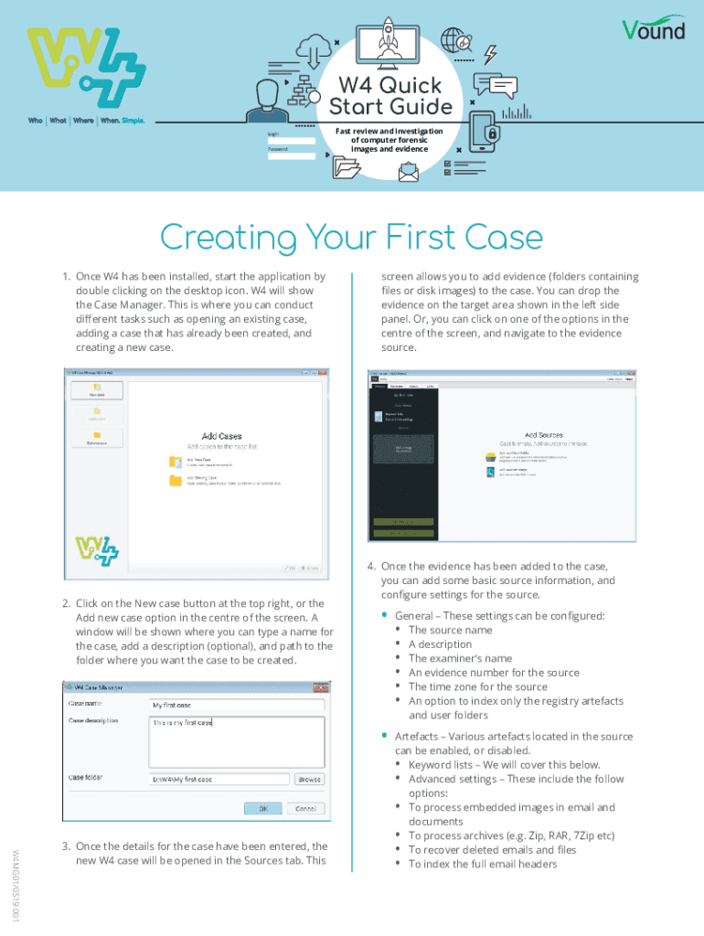 W4 Quick Start Guide Login Passwords review and investigation of computer forensic images and evidenceCreating Your First Case 1. Once W4 has been installed, start the application by double-clicking