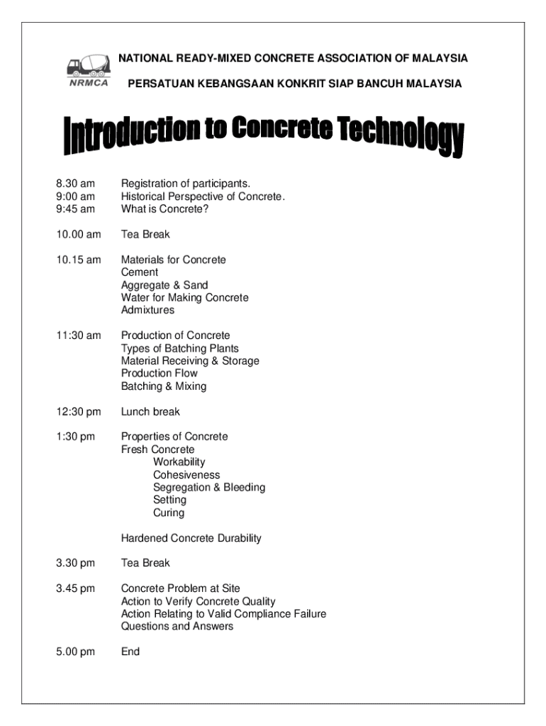 Get the free National Ready-Mixed Concrete Association of Malaysia