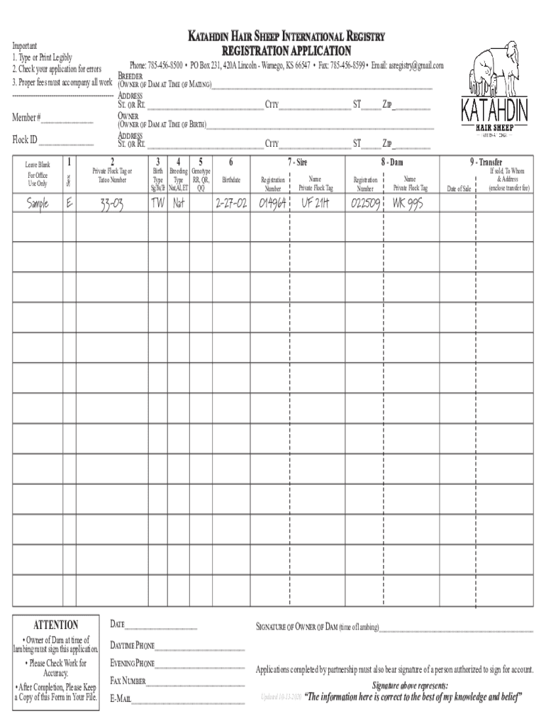 How to fill out katahdin hair sheep international
