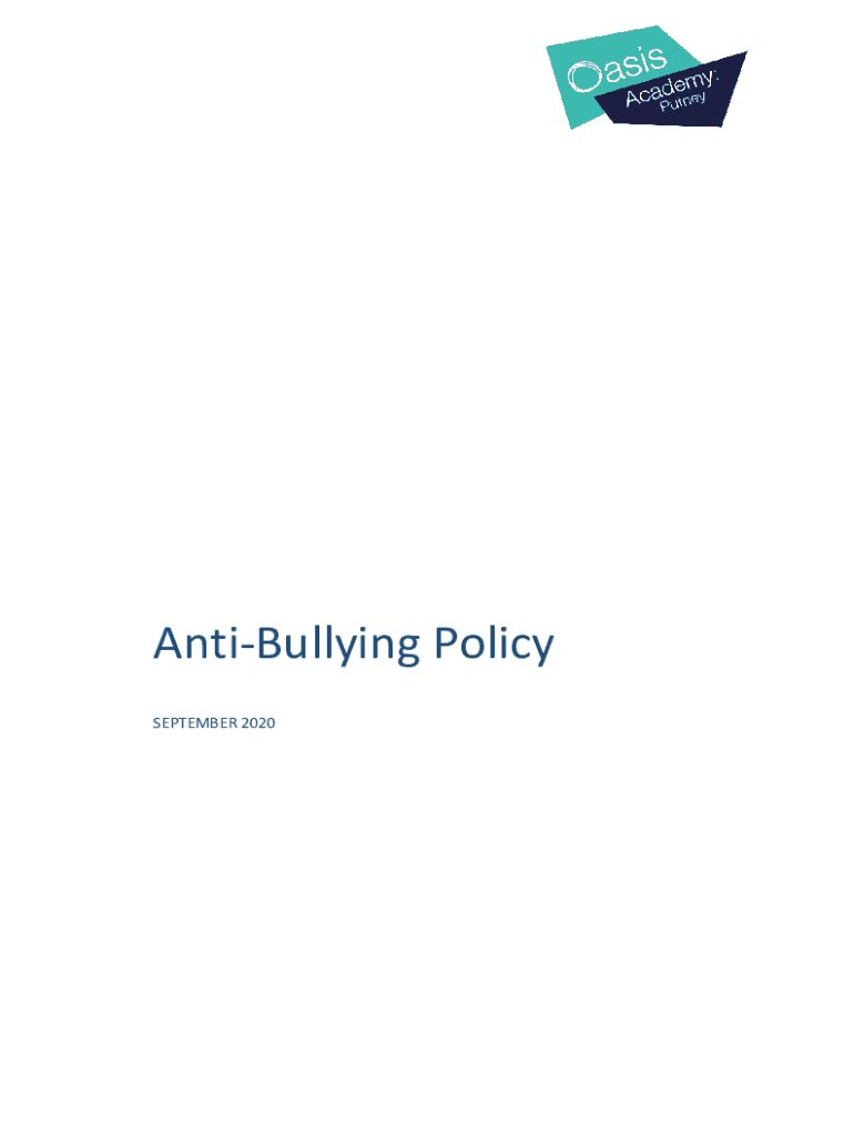 AntiBullying Policy SEPTEMBER 2020Oasis Academy Putnam AntiBullying Policy Vision Statement Together we learn, grow and achieve We aim to promote positive mental health for every member of our staff
