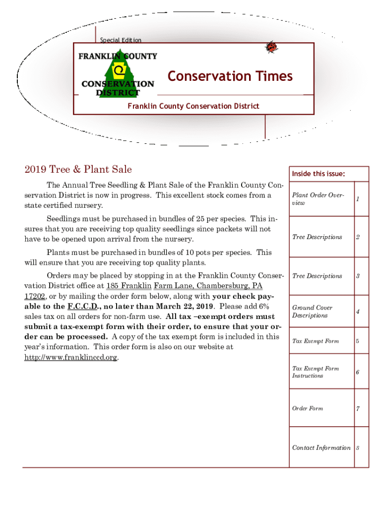 Special EditionConservation Times Franklin County Conservation District2019 Tree & Plant Sale The Annual Tree Seedling & Plant Sale of the Franklin County Conservation District is now in progress.
