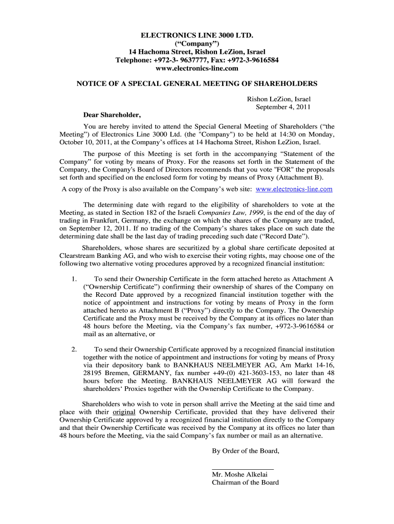 Get the free Notice of a Special General Meeting of Shareholders - Electronics line