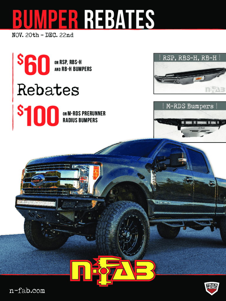 BUMPER REBATES NOV. 20th DEC. 22nd$60on RSP, RUSH and RBC BUMPERS| RSP, RUSH, RBC |Rebates$100nfab.com| MRS Bumpers | on MRDSPRERUNNER RADIUS BUMPERSBUMPER REBATES NOV. 20th DEC. 22ndProof of purchase