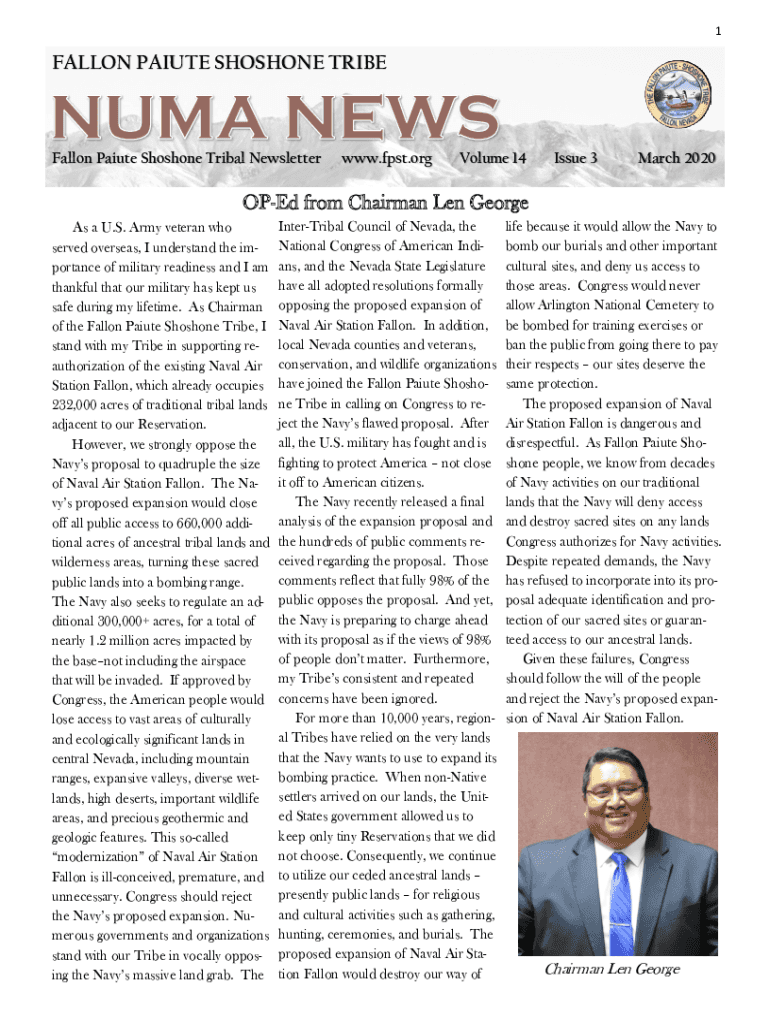 1FALLON PAIUTE SHOSHONE TRIBEFallon Paiute Shoshone Tribal Newsletter.fast.volume 14Issue 3March 2020OPEd from Chairman Len George As a U.S. Army veteran who served overseas, I understand the importance