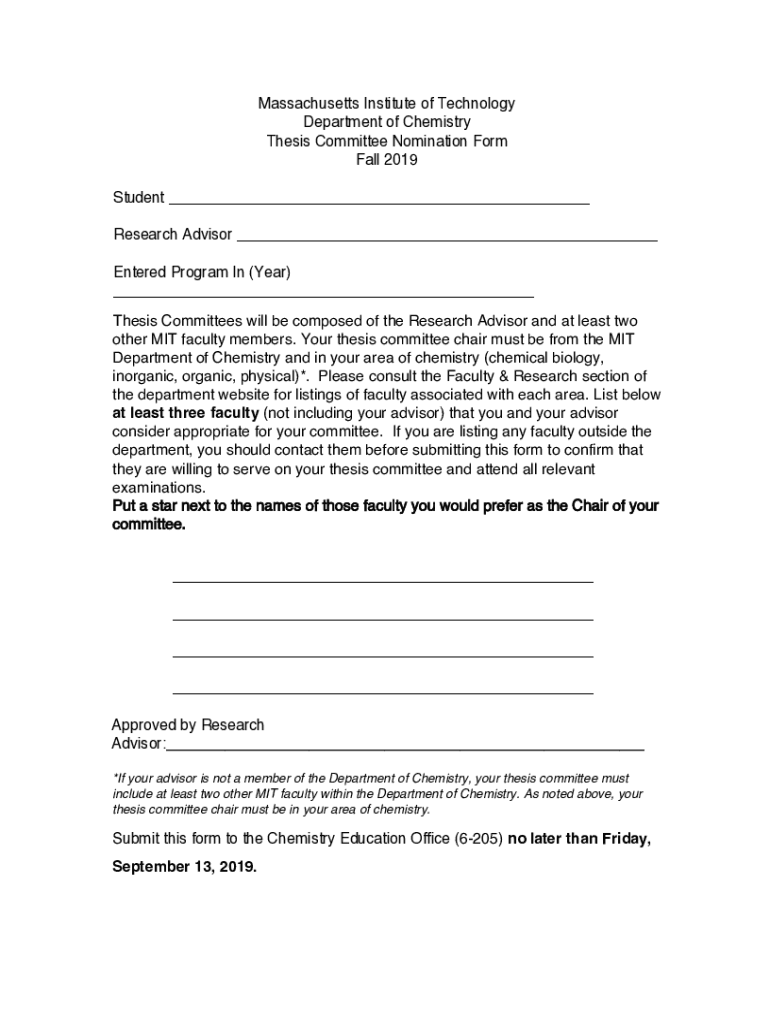 Get the free Thesis Committee Nomination Form - chemistry mit