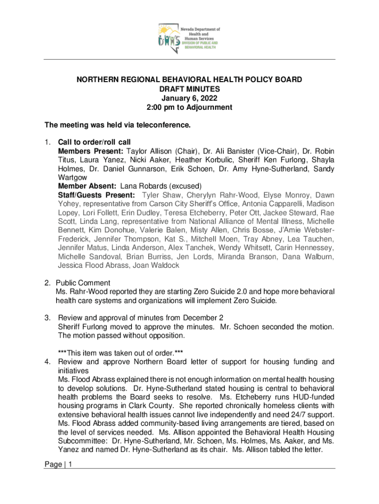 NORTHERN REGIONAL BEHAVIORAL HEALTH POLICY BOARD