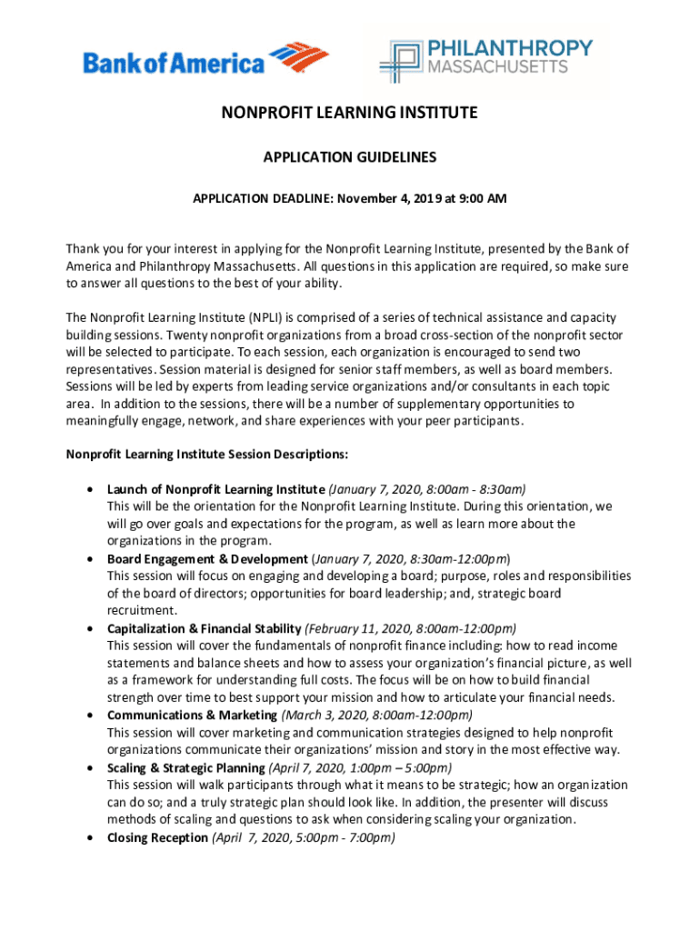 NONPROFIT LEARNING INSTITUTE APPLICATION GUIDELINES APPLICATION DEADLINE: November 4, 2019, at 9:00 AMT thank you for your interest in applying for the Nonprofit Learning Institute, presented by the