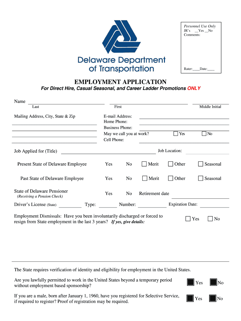 Personnel Use Only JR s Yes No Comments: Rater: Date: EMPLOYMENT APPLICATION For Direct Hire, Casual Seasonal, and Career Ladder Promotions ONLY Name Last First Mailing Address, City, State & Zip
