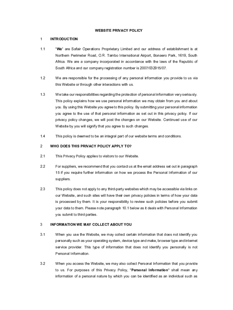WEBSITE PRIVACY POLICY 1 1.1INTRODUCTION We are Safer Operations Proprietary Limited and our address of establishment is at Northern Perimeter Road, O.R. Rambo International Airport, Nonzero Park,