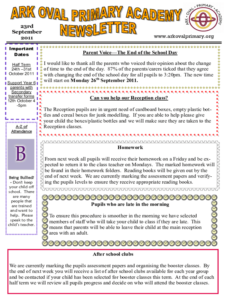 Get the free Bi-Weekly Principals Q&A - ZoomArk Oval Primary Academy