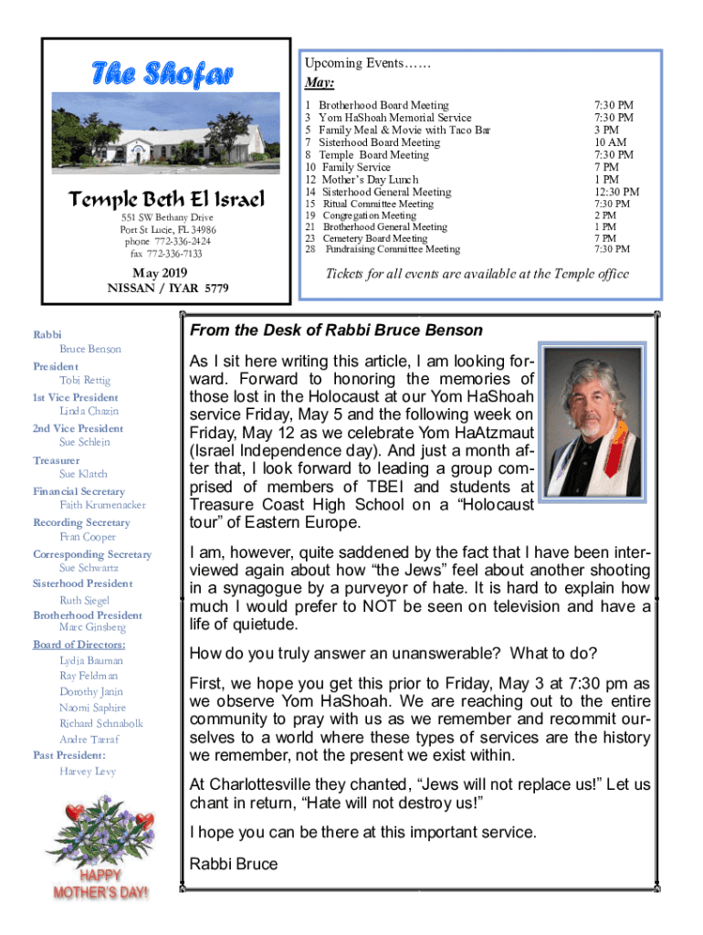 The ShofarTemple Beth El Israel 551 SW Bethany Drive Port St Lucie, FL 34986 phone 7723362424 faxes 7723367133May 2019 NISSAN / IYAR 5779Rabbi Bruce Benson President Toby Rettig 1st Vice President