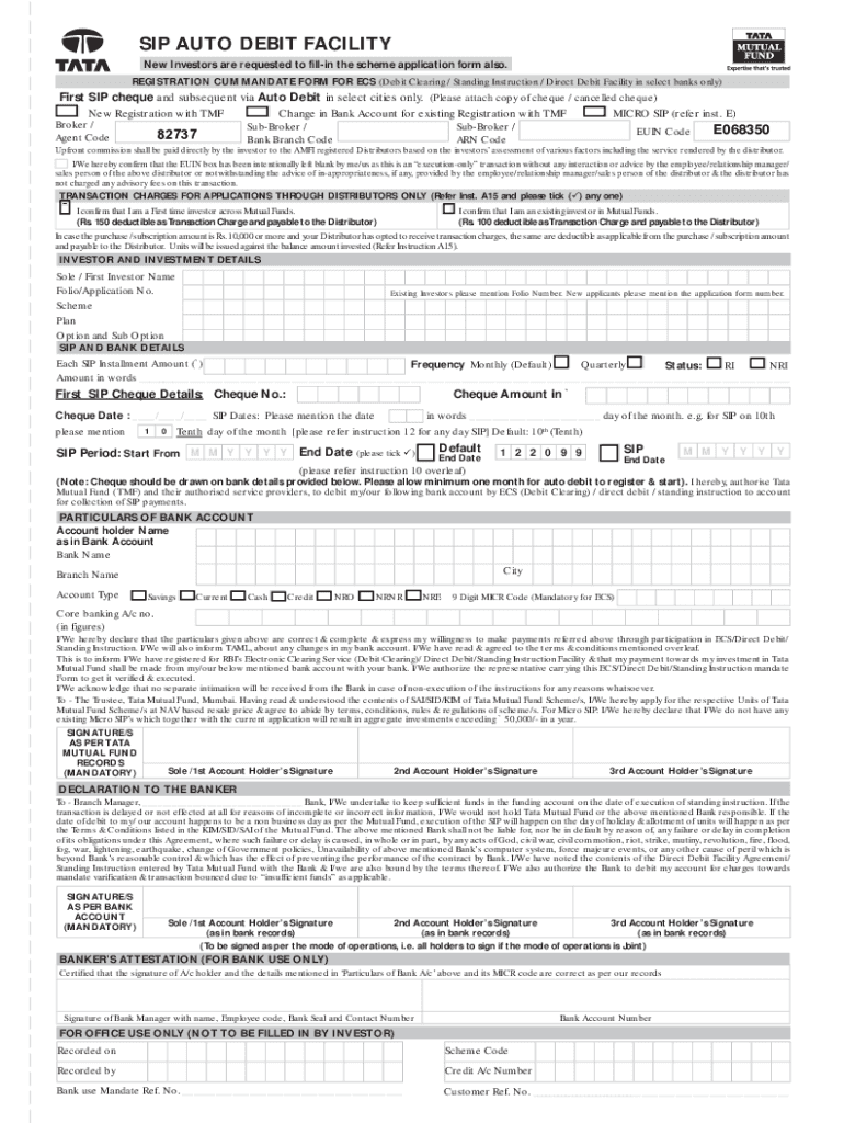 SIP AUTO DEBIT FACILITY New Investors are requested to filling the scheme application form also. REGISTRATION Come MANDATE FORM FOR ECS (Debit Clearing / Standing Instruction / Direct Debit Facility