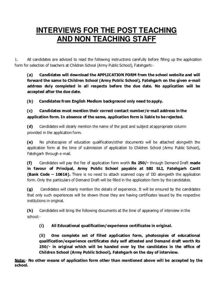 INTERVIEWS FOR THE POST TEACHING AND NON TEACHING STAFF 1. All candidates are advised to read the following instructions carefully before filling up the application form for selection of teachers