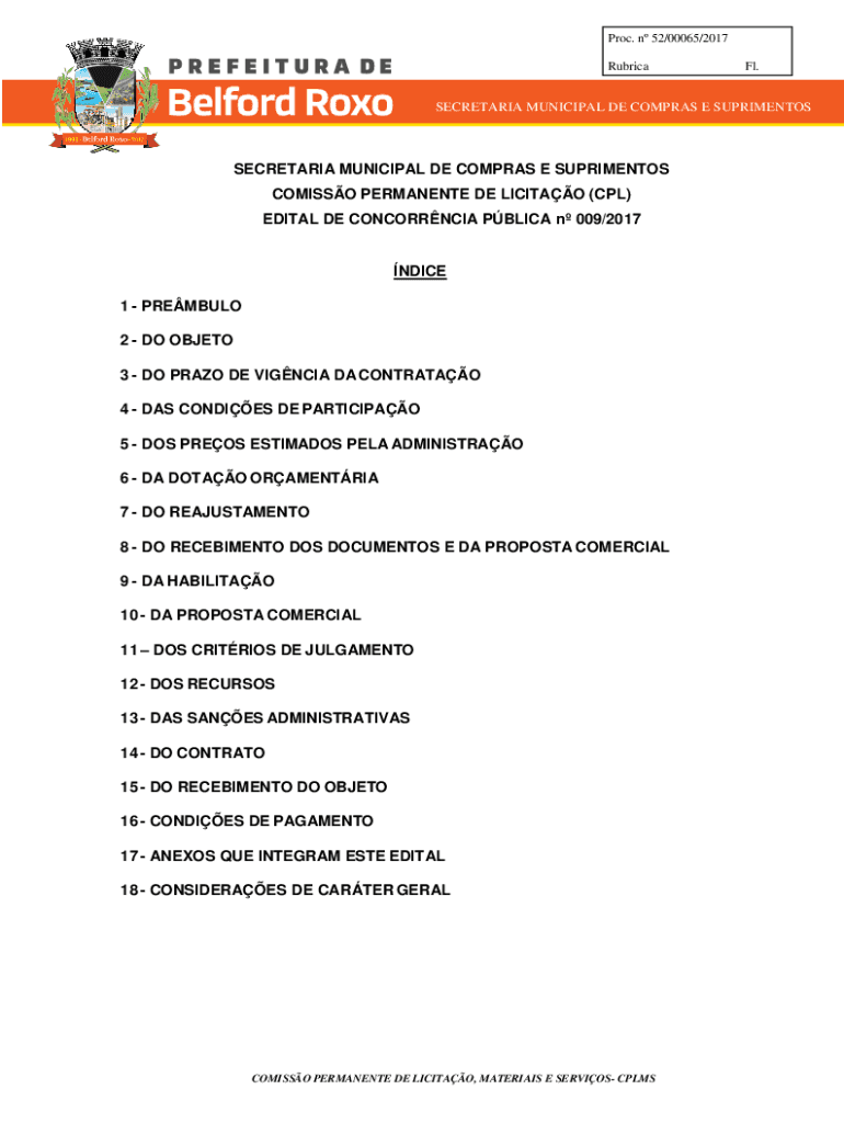 Pro. N 52/00065/2017 Lubricant. SECRETARIAT MUNICIPAL DE COM PRAS E SUPRIMENTOSSECRETARIA MUNICIPAL DE COM PRAS E NUTRIMENTS COMICS PERMANENT DE LICIT AO (CPL) EDIT AL DE CONCORDIA PBL ICA n 009/2017NDICE