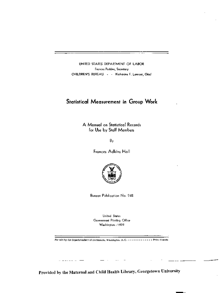 ChiefStotisricqlMeosurementin Group Work Manual on StqtisticolRecords