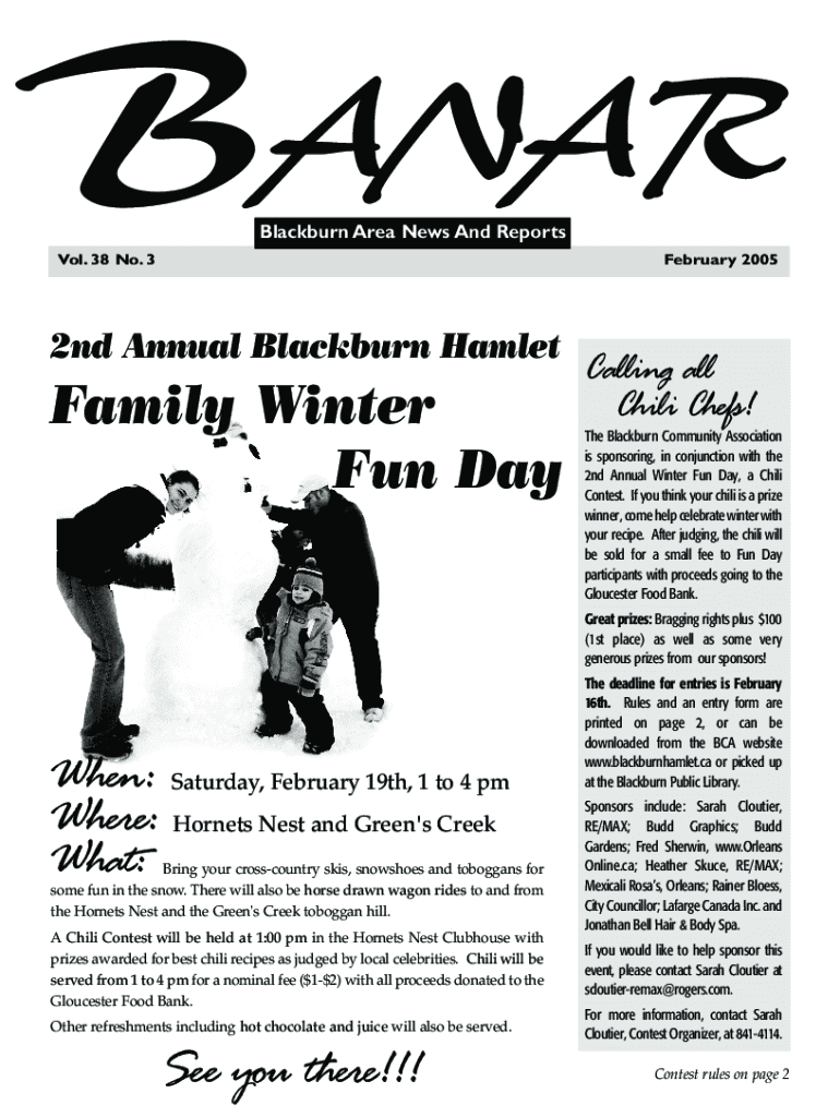 BANARBlackburn Area News And Reports. 38 No. 32nd Annual Blackburn HamletFamily Winter Fun Day February 2005Calling all Chili Chefs! The Blackburn Community Association is sponsoring, in conjunction