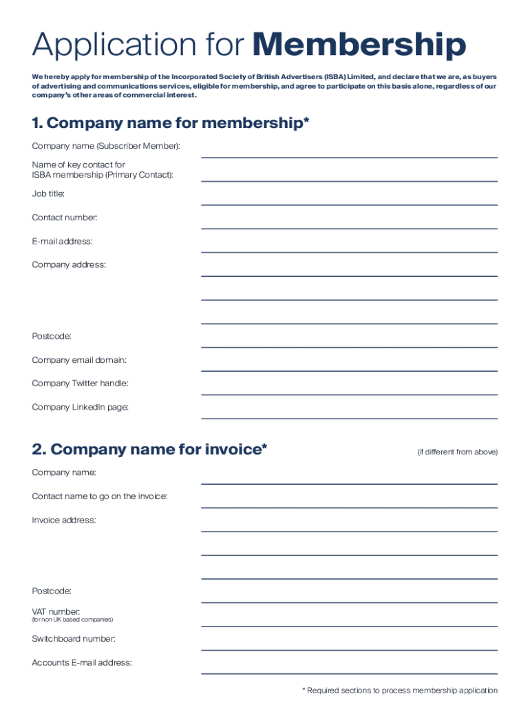 Application forMembershipApplication for Membership hereby apply for membership of the Incorporated Society of British Advertisers (ISBN) Limited, and declare that we are, as buyers of advertising