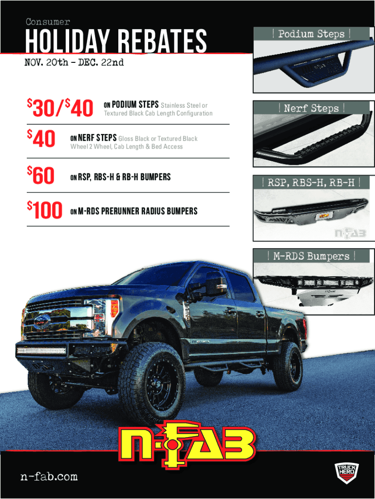 ConsumerHOLIDAY REBATES| Podium Steps |NOV. 20th DEC. 22nd30/ $40 40 NERF STEPS on PODIUMSTEPS Stainless Steel or Textured Black Cab Length Configuration| Nerf Steps |Gloss Black or Textured Black