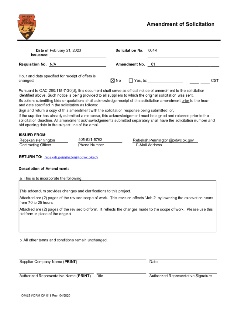 Submit the completed amendment of solicitation document to the appropriate parties for review and approval.