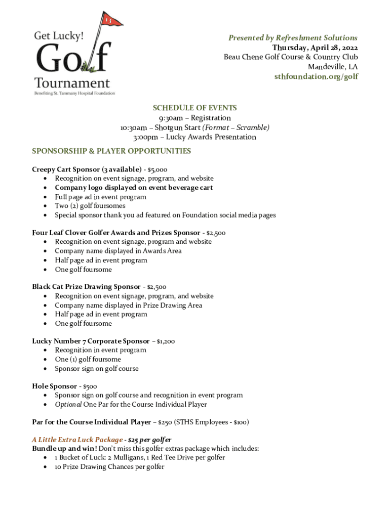 Get the free Get Lucky! Golf Tournament - St. Tammany Health System