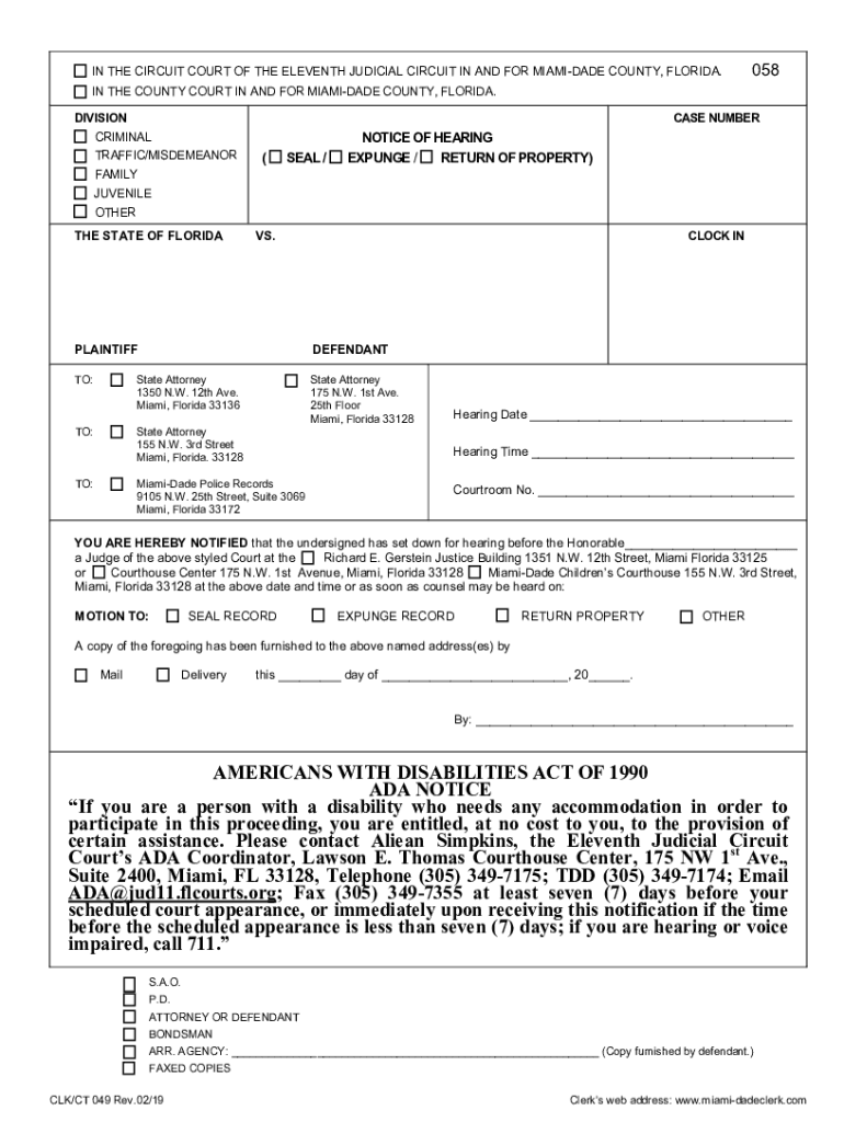 IN THE CIRCUIT COURT OF THE ELEVENTH JUDICIAL CIRCUIT IN AND FOR MIA MIDADE COUNTY, FLORIDA.058 IN THE COUNTY COURT IN AND FOR MIA MIDADE COUNTY, FLORIDA. CASE NUMBERDIVISION CRIMINAL TRAFFIC/MISDEMEANOR