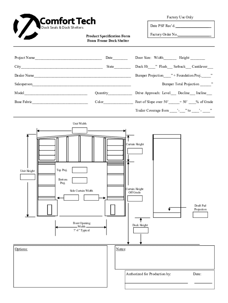 Factory Use Only Date PSF Recd.___Dock Seals & Dock SheltersFactory Order No.___Product Specification Form Foam Frame Dock ShelterProject Name___Date___Door Size: Width___ Height ___City___State___Dock