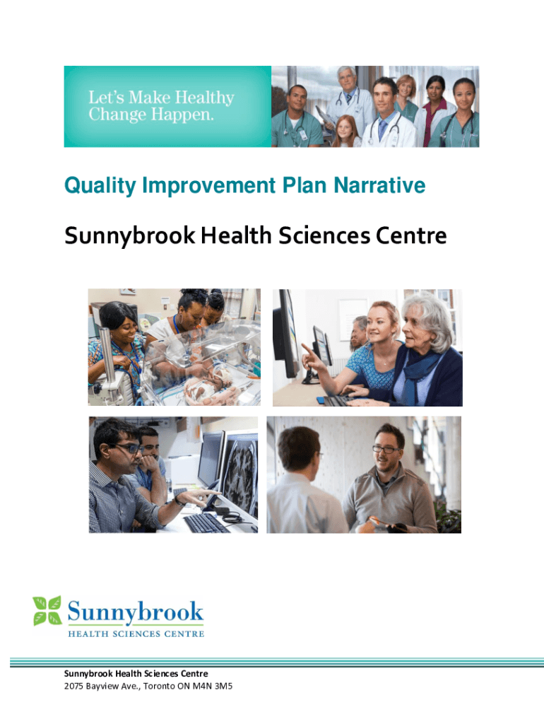 Quality Improvement Plan NarrativeSunnybrook Health Sciences Centre12/18/2017Sunnybrook Health Sciences Center 2075 Bayview Ave., Toronto ON M4N 3M5Overview Sunny brook Health Sciences Center (HHSC)